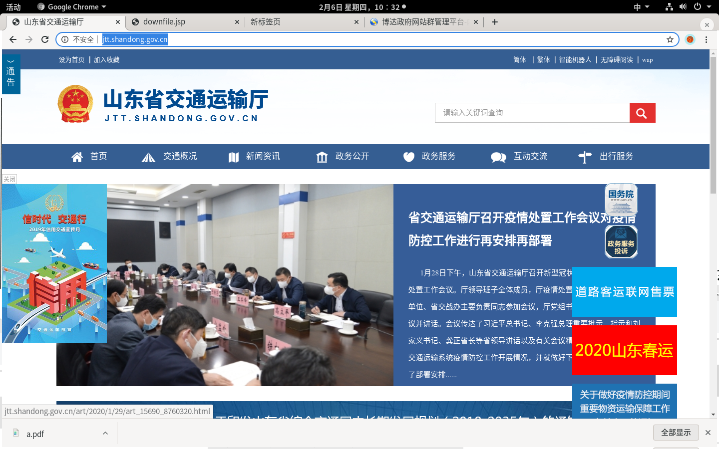 3、点击游动图片《关于做好疫情防控期间重要物资运输保障工作》,即可进入下载页面。