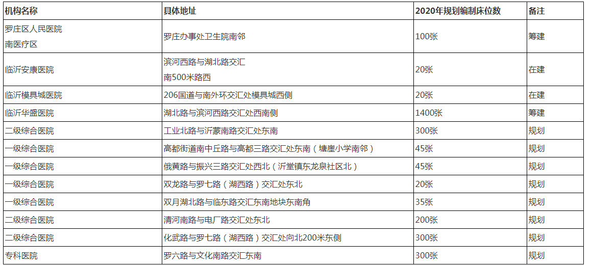 表3 罗庄区医院规划情况一览表