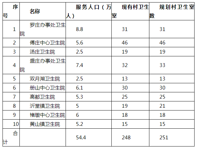 表6 街镇卫生室规划一览表