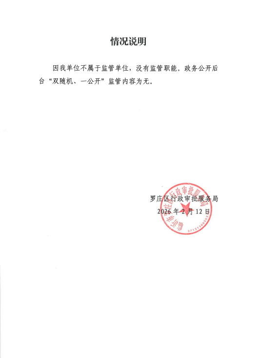 信息名称  罗庄区行政审批服务局关于双随机一公开的情况说明  成文日期  2026-02-12