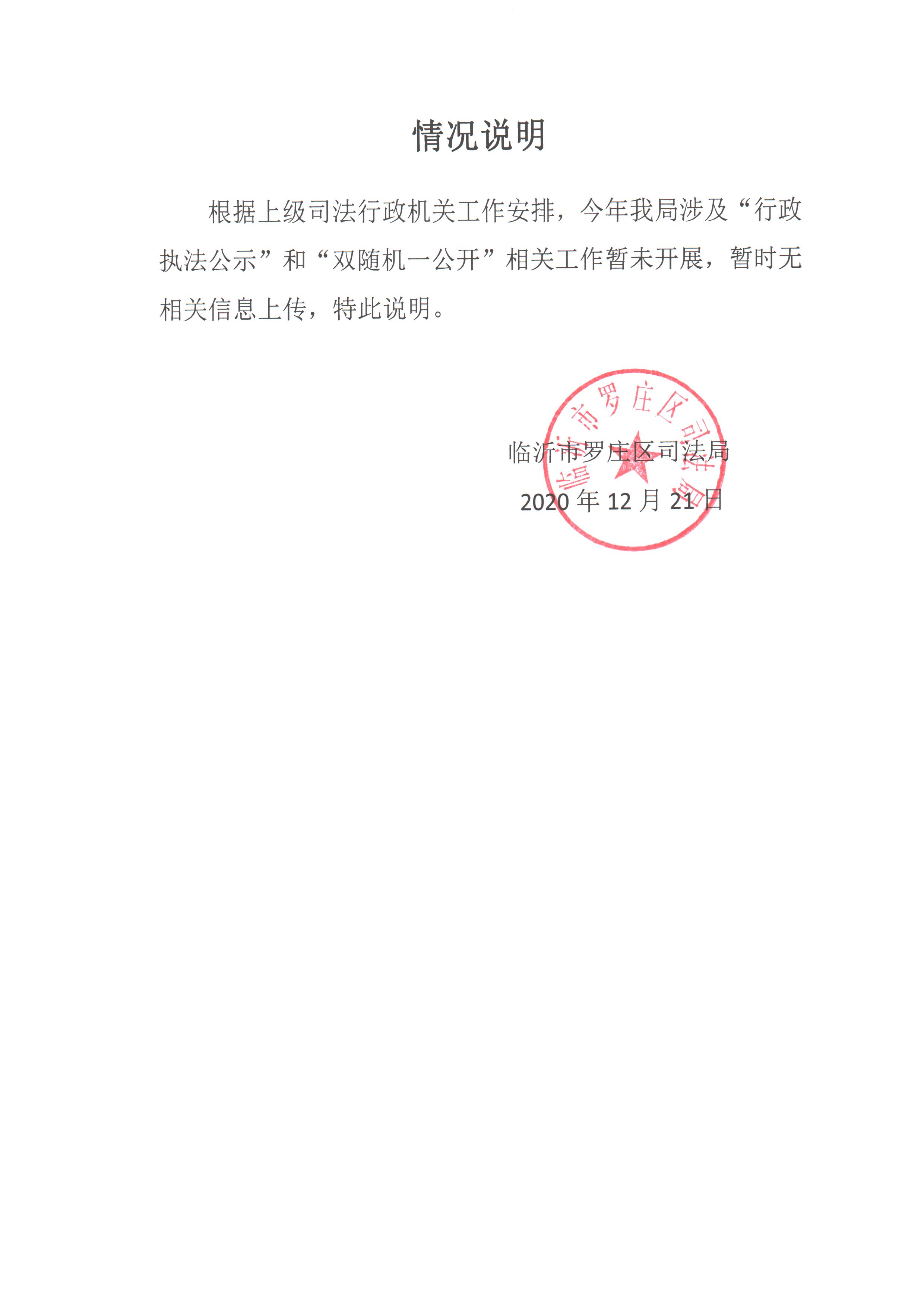 信息名称  罗庄区司法局关于双随机一公开、行政执法公示工作情况的说明  成文日期  2020-12-25