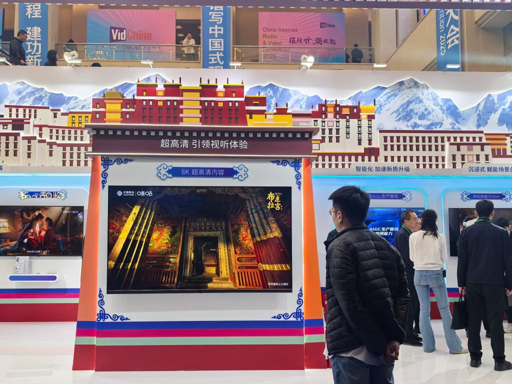 3月28日拍摄的第十二届中国网络视听大会现场。近年来,包括微短剧在内的中国网络影视剧、网络文学、网络游戏成为中国文化出海“新三样”,在海外刮起强劲“中国风”。新华社记者 李倩薇 摄