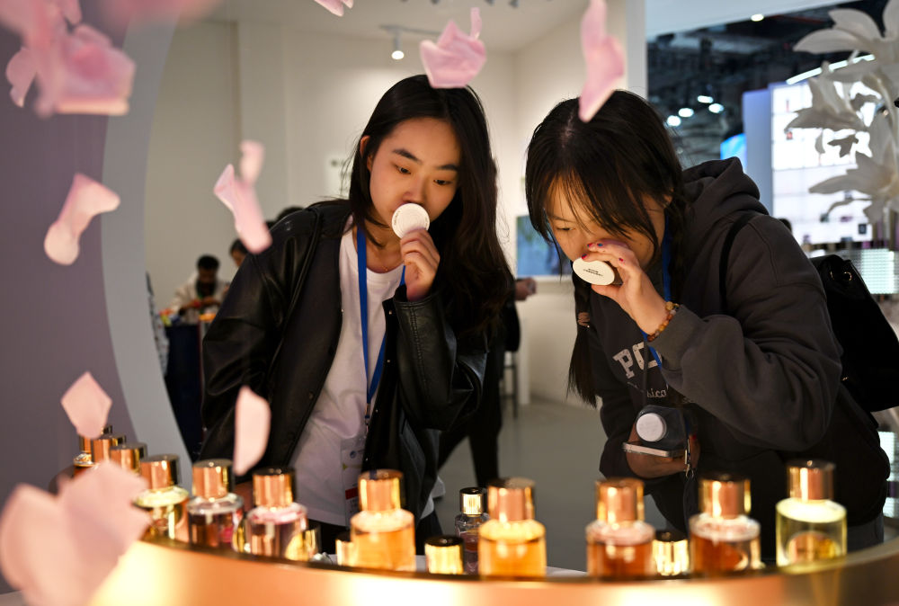 2024年11月9日,观众在第七届进博会欧莱雅展台试闻香水。欧莱雅是进博会七届“全勤生”。新华社发(陈浩明 摄)新华社上海6月10日电 题:外资企业在华以创新助推“在中国、为世界”