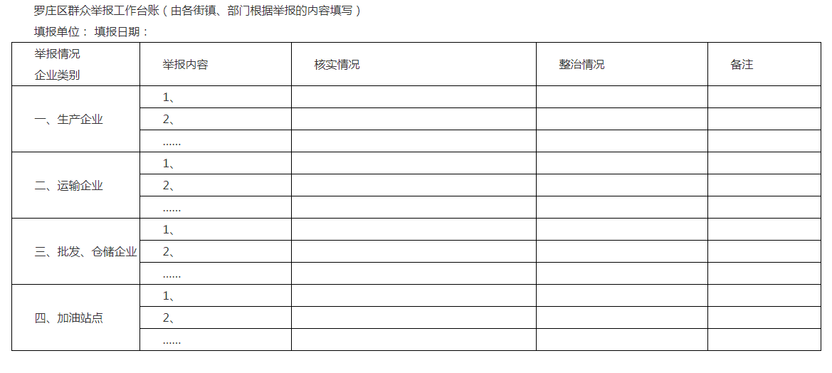 罗庄区群众举报工作台账(由各街镇、部门根据举报的内容填写)