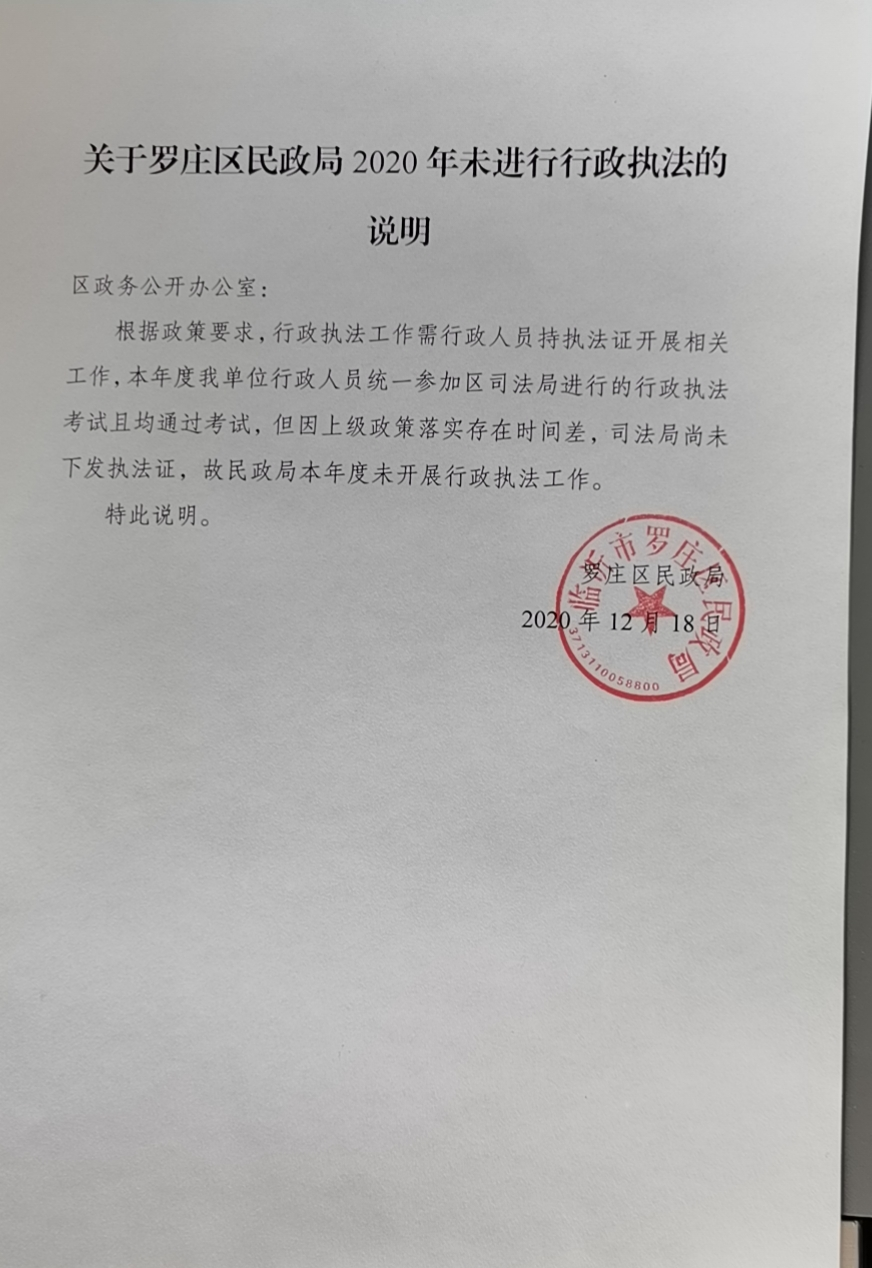 信息名称  罗庄区民政局关于双随机一公开、行政执法公示工作的情况  成文日期  2020-12-25