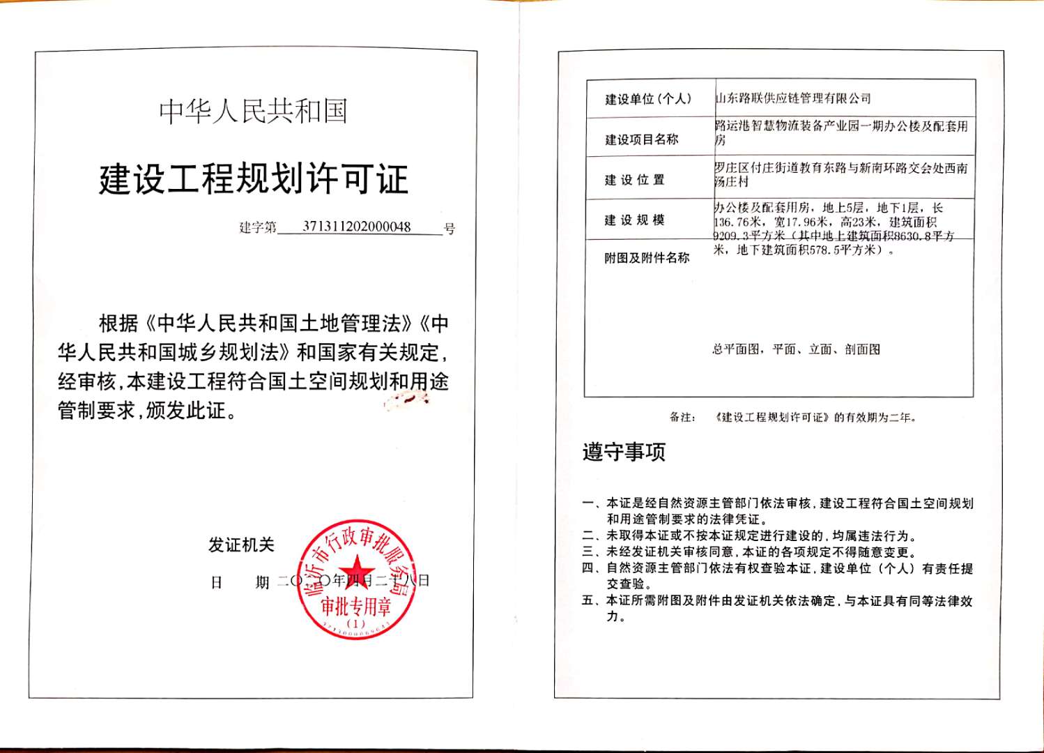 路运港智慧物流装备产业园一期办公楼及配套用房建设工程规划许可