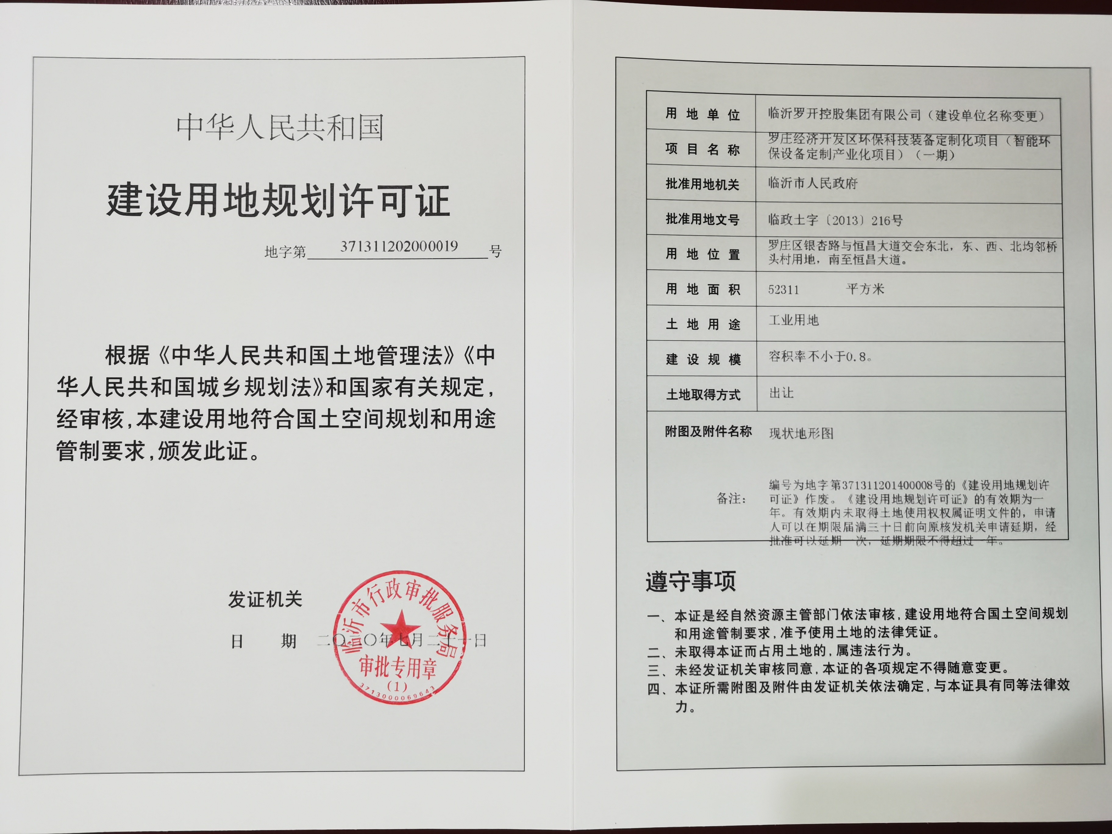 信息名称  环保科技装备定制化项目建设用地规划许可  成文日期  2020-07-30