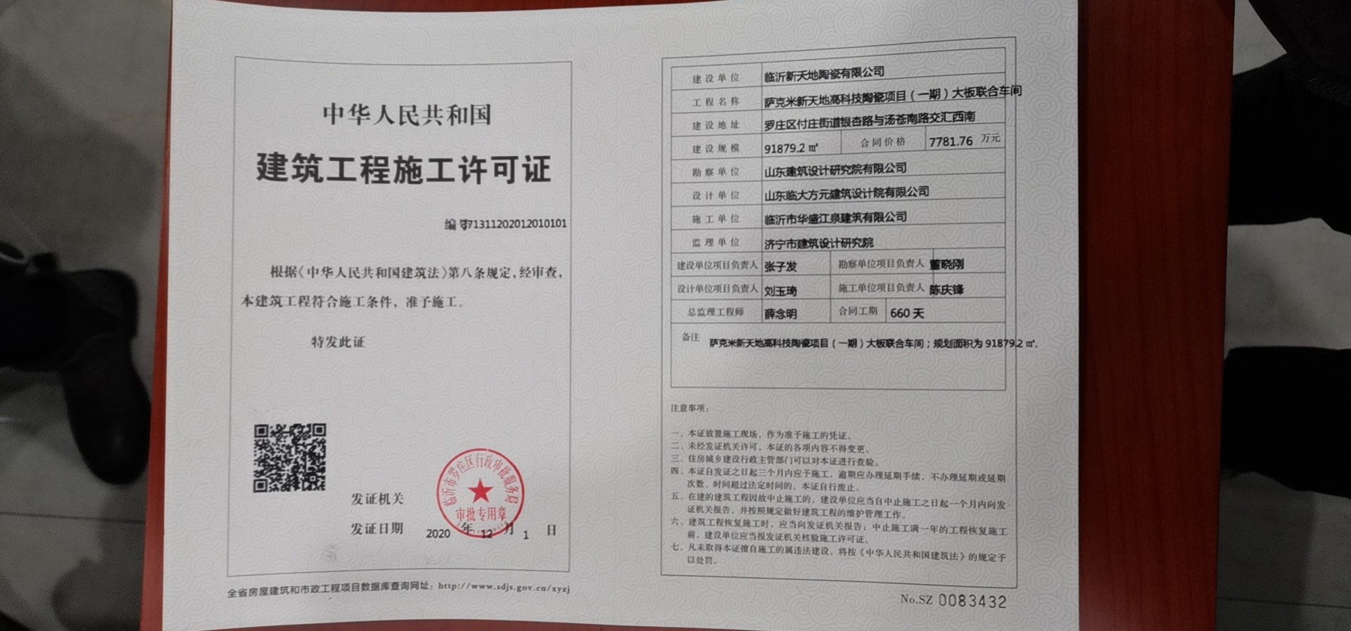 信息名称  萨克米新天地高科技陶瓷项目施工信息  成文日期  2020-12-01