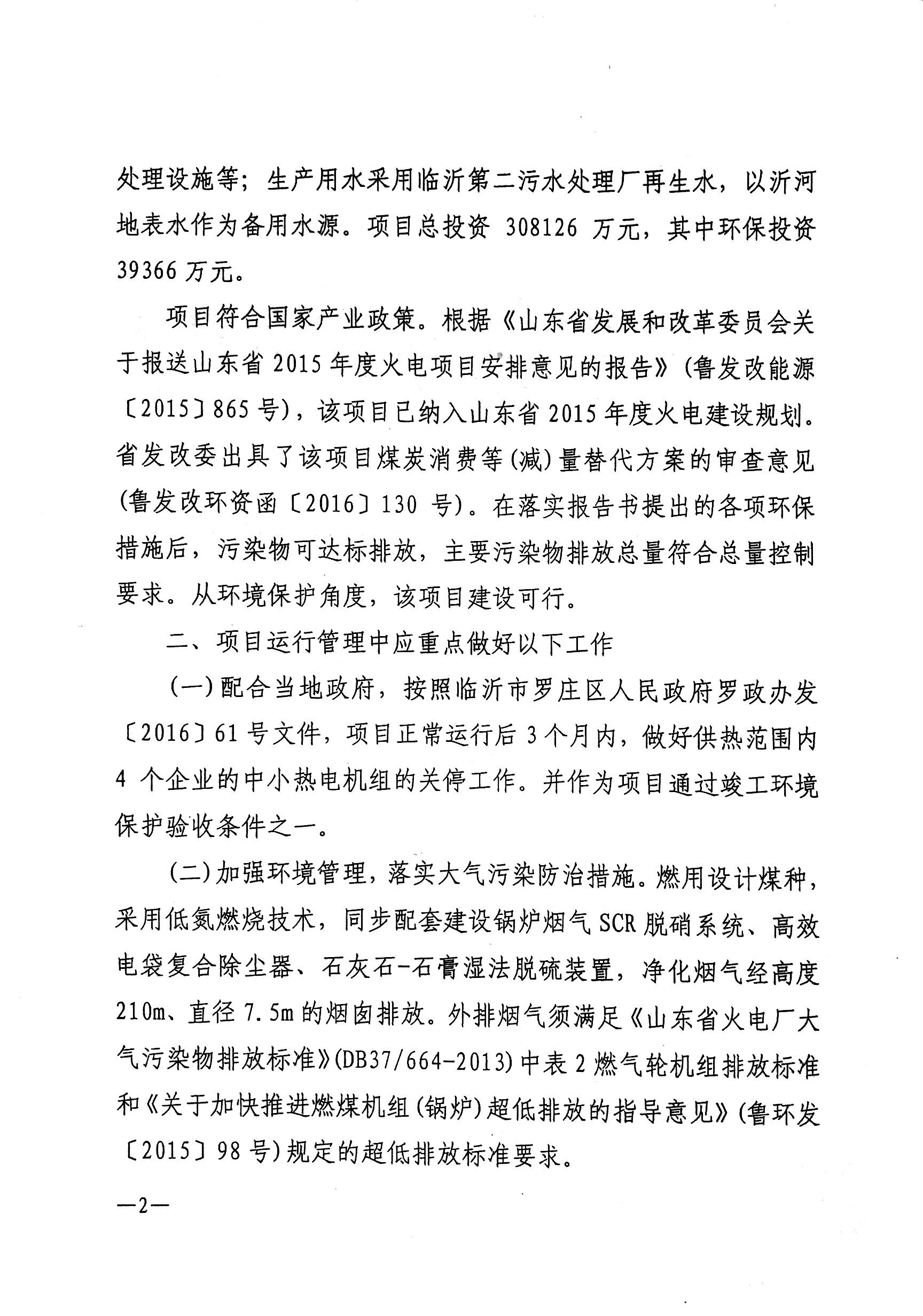 信息名称  2×35万千瓦热电联产项目环境影响报告书的批复  成文日期  2016-09-29