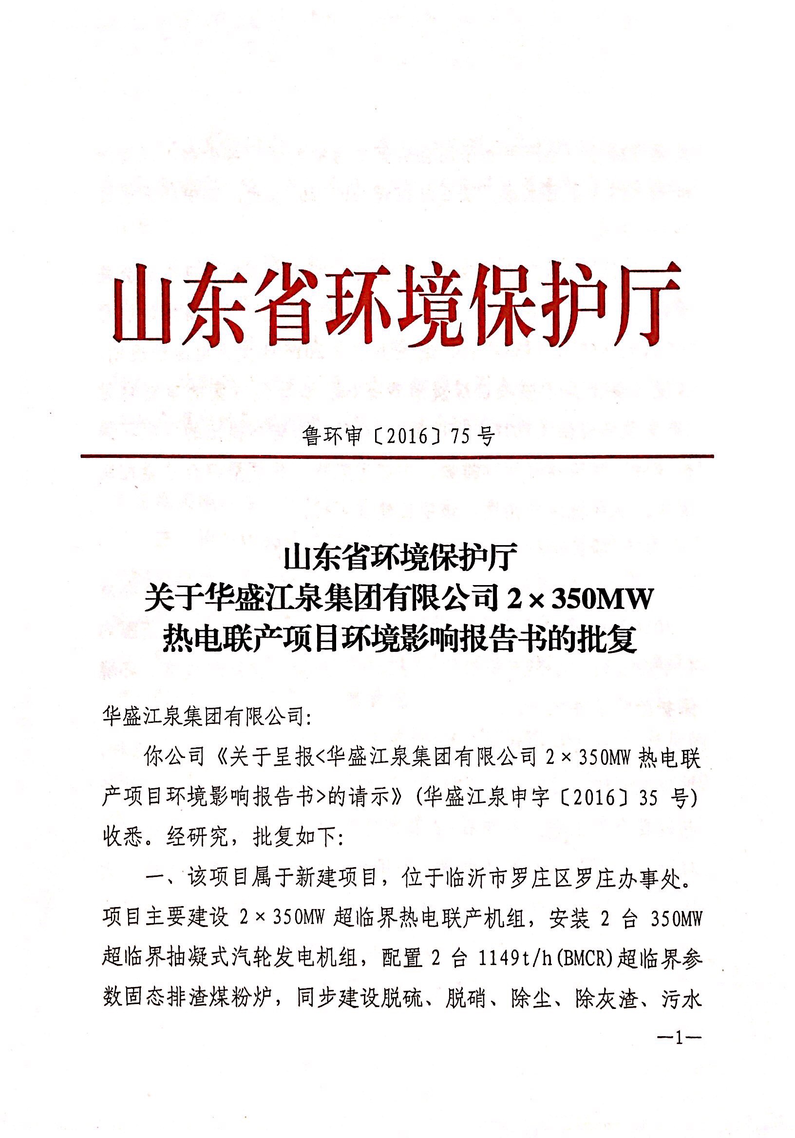 2×35万千瓦热电联产项目环境影响报告书的批复