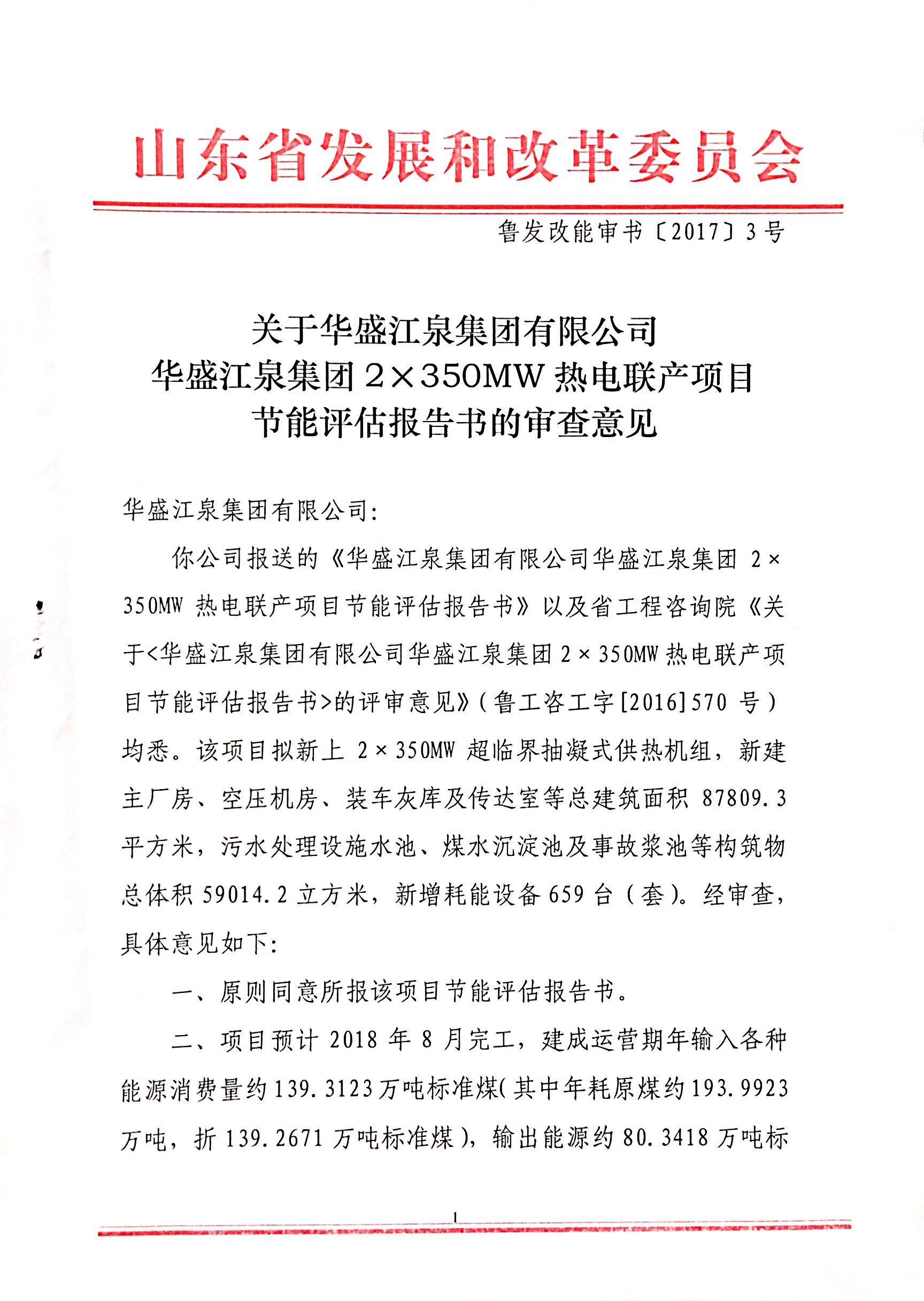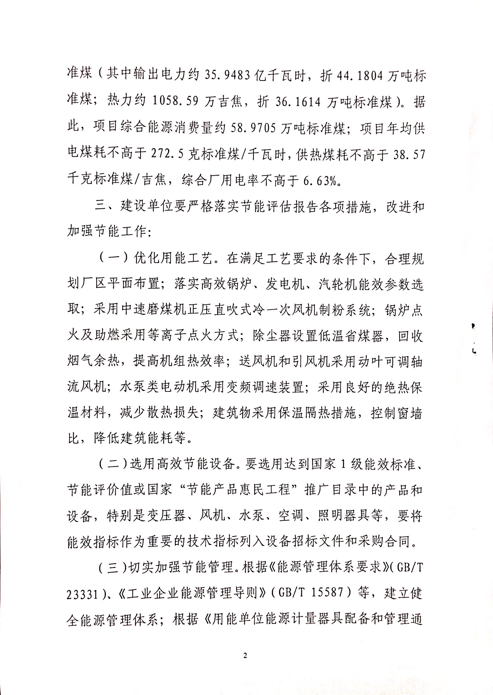 2×35万千瓦热电联产项目节能评估报告书的审查意见