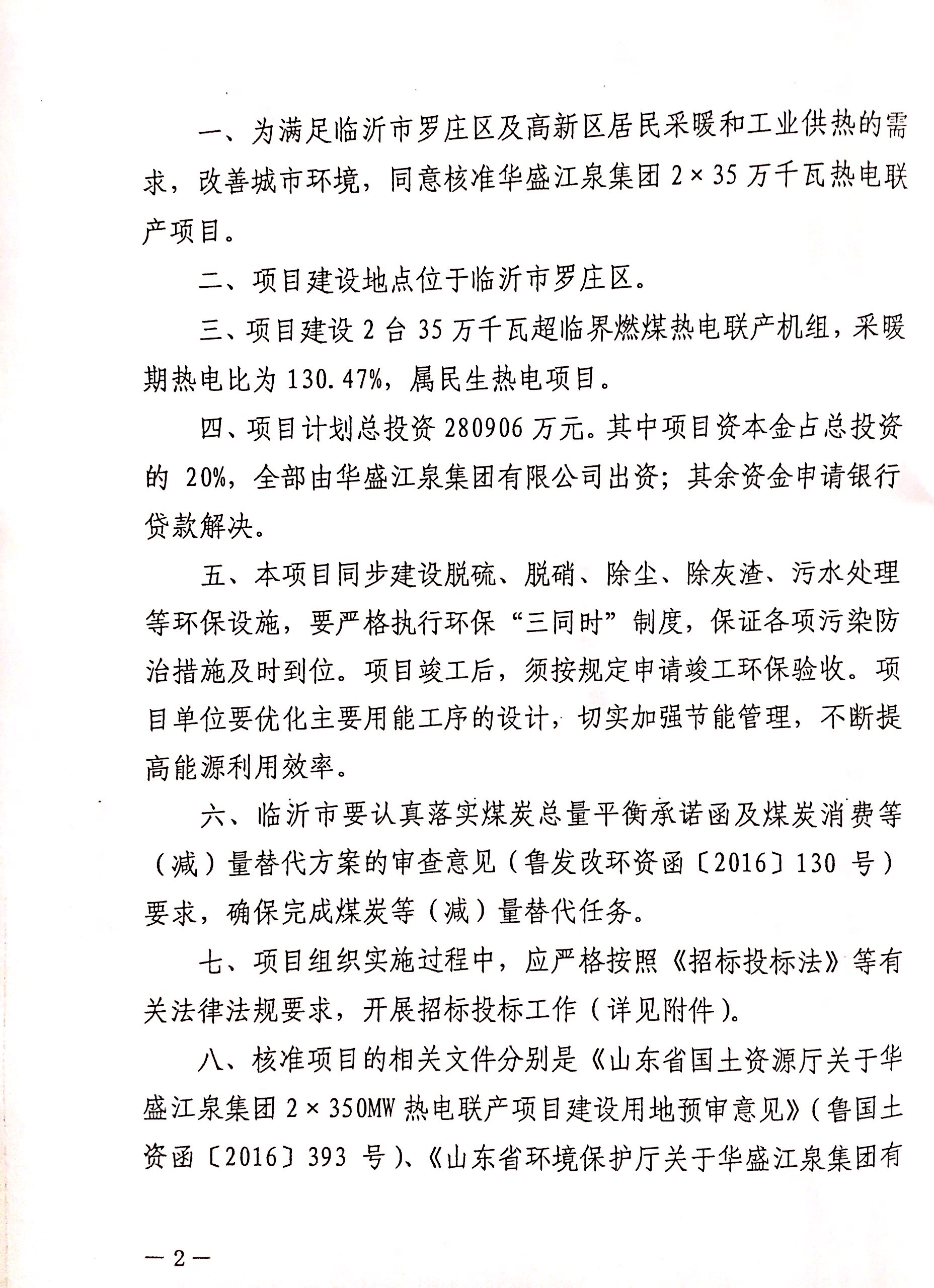 2×35万千瓦热电联产项目