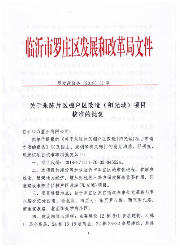 朱陈片区棚户区项目改造批复