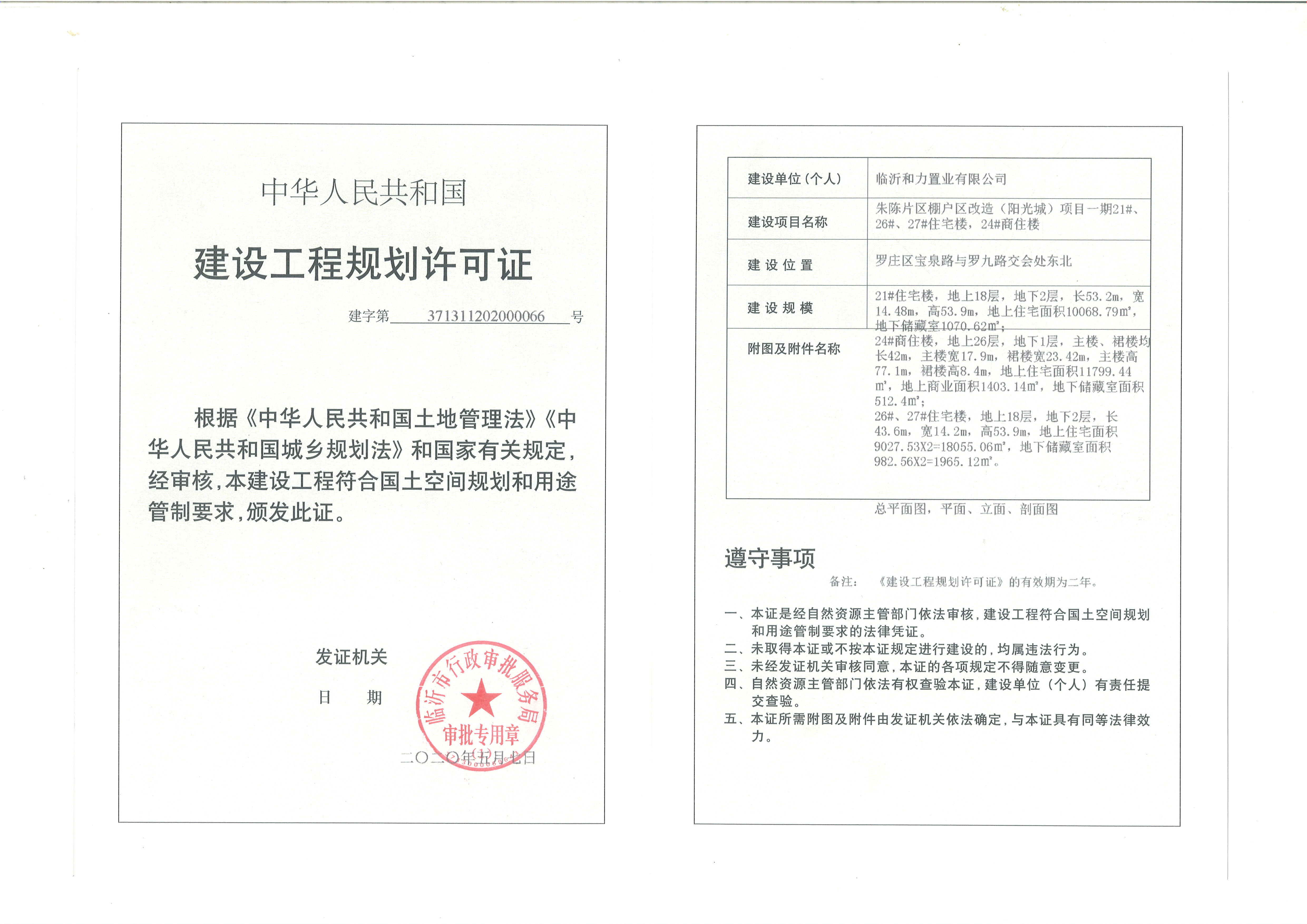 朱陈片区棚户区改造项目一期21#、26#、27#住宅楼24#商住楼建设工程规划许可证