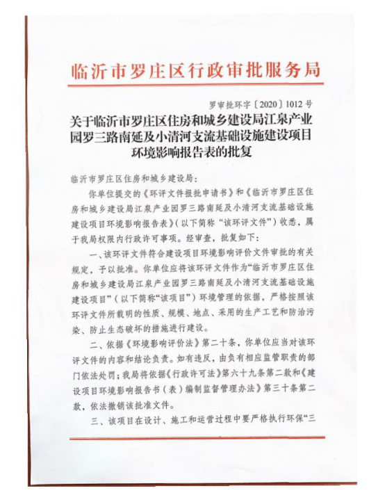 江泉产业园罗三路南延及小清河支流基础设施建设项目