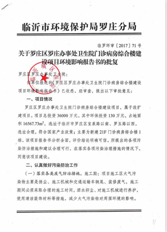 罗庄区罗庄街道办事处卫生院门诊病房综合楼项目