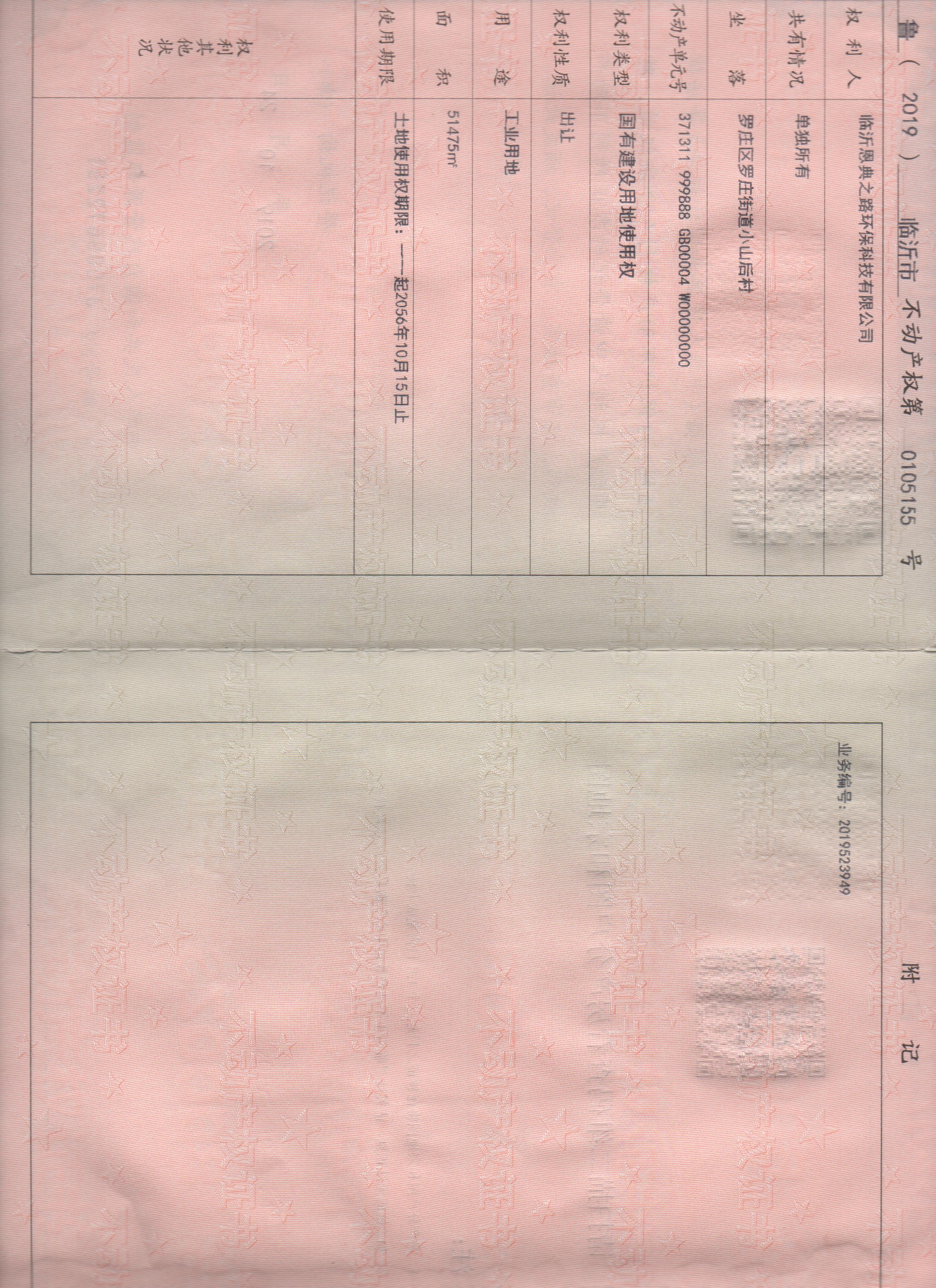 信息名称  罗庄街道一般固废综合利用项目土地证  成文日期  2021-01-05