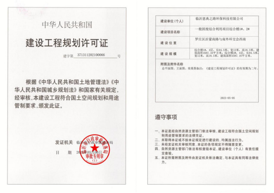 信息名称  一般固废综合利用项目建设工程规划许可证  成文日期  2021-10-20