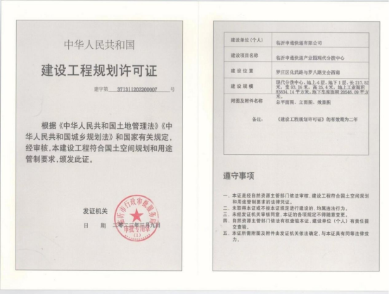 信息名称  临沂市申通快递园有限公司建设工程规划许可  成文日期  2022-03-31