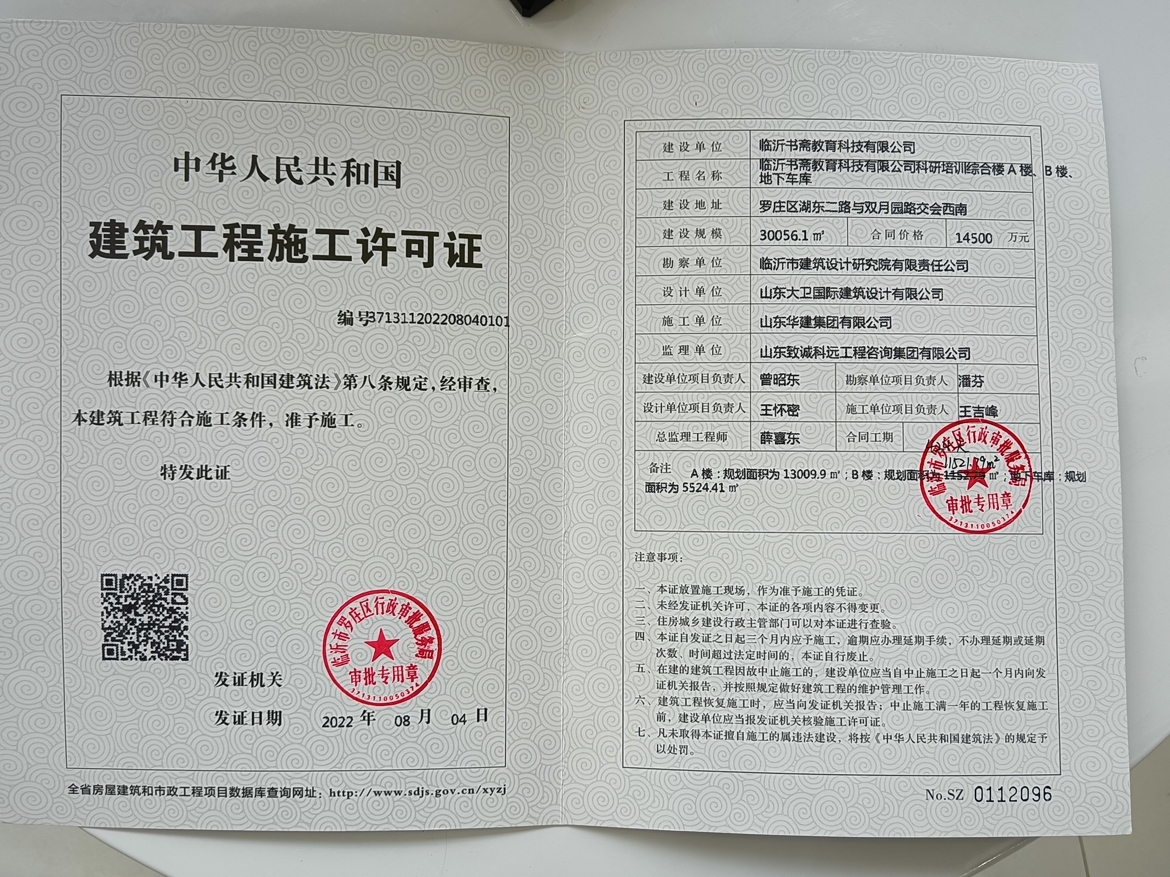 信息名称  施工许可证  成文日期  2022-09-01